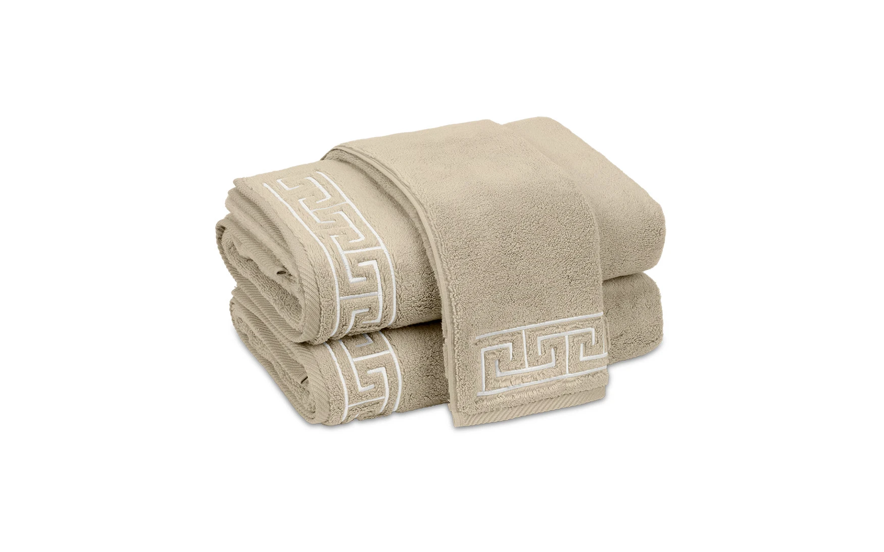 Adelphi's signature geometric frame embroidery is stitched onto our ultra-soft and plush Milagro towel. Sitting at the crossroads of classic and contemporary, Adelphi is our only stocked bath embroidery available on a solid colored base and the first to grace Milagro – making it all the more special.