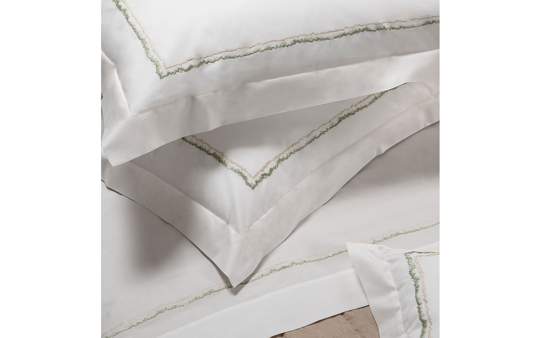Arno bed lines feature a pattern inspired by the river with soft ripples of embroidery.