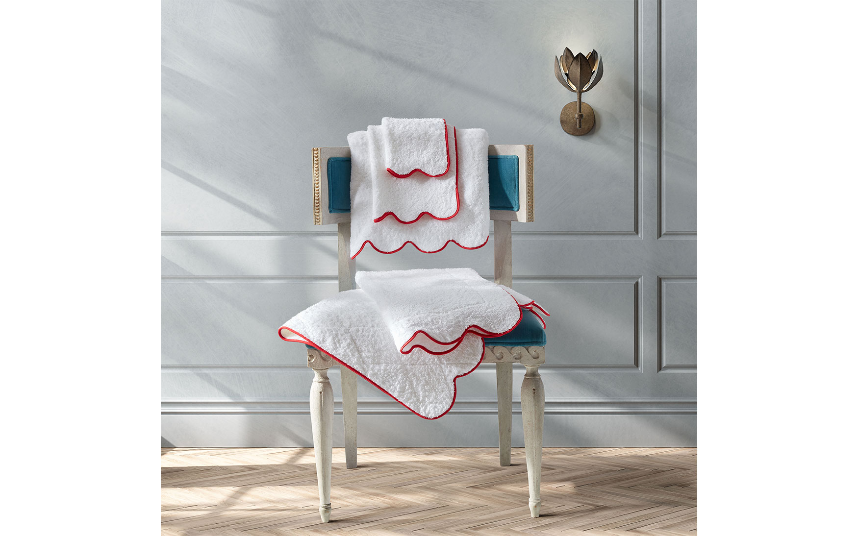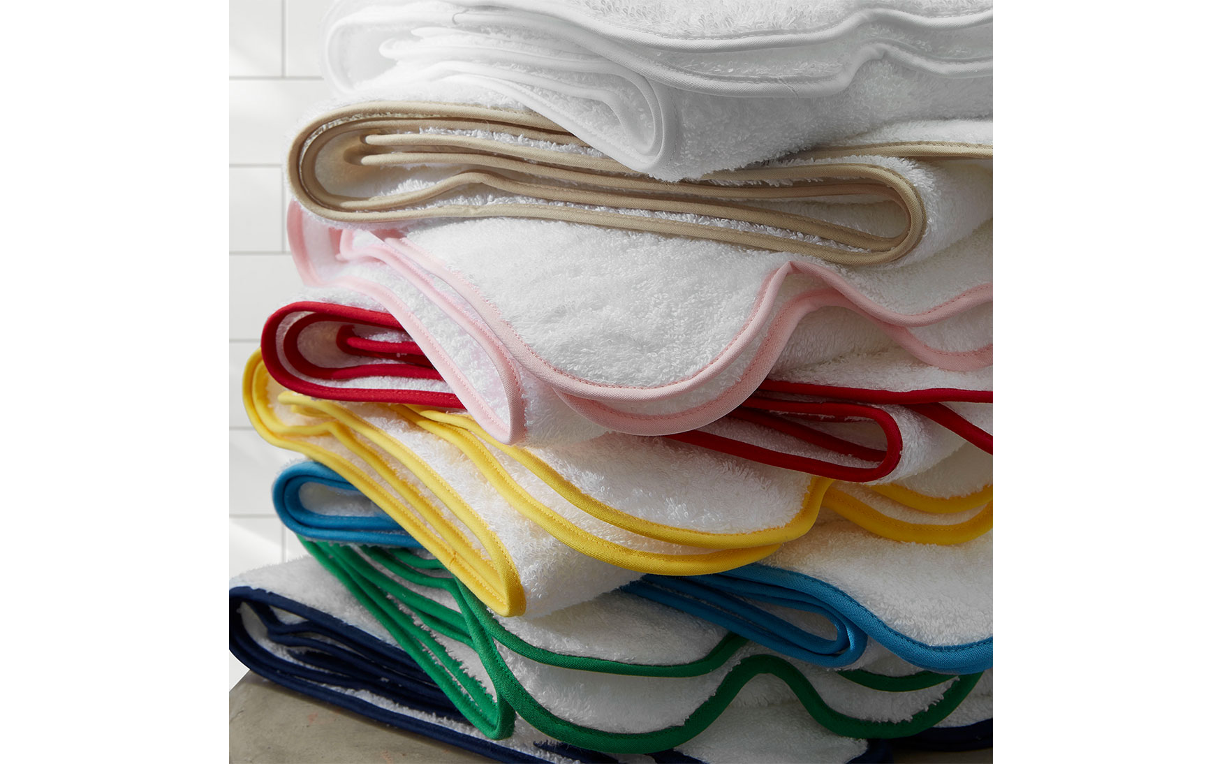 In the Cairo collection, a simple design is simply beautiful. Its pure, plush long-staple cotton terry is unadorned but for a 100% cotton piped scallop edge in an array of vibrant hues.
