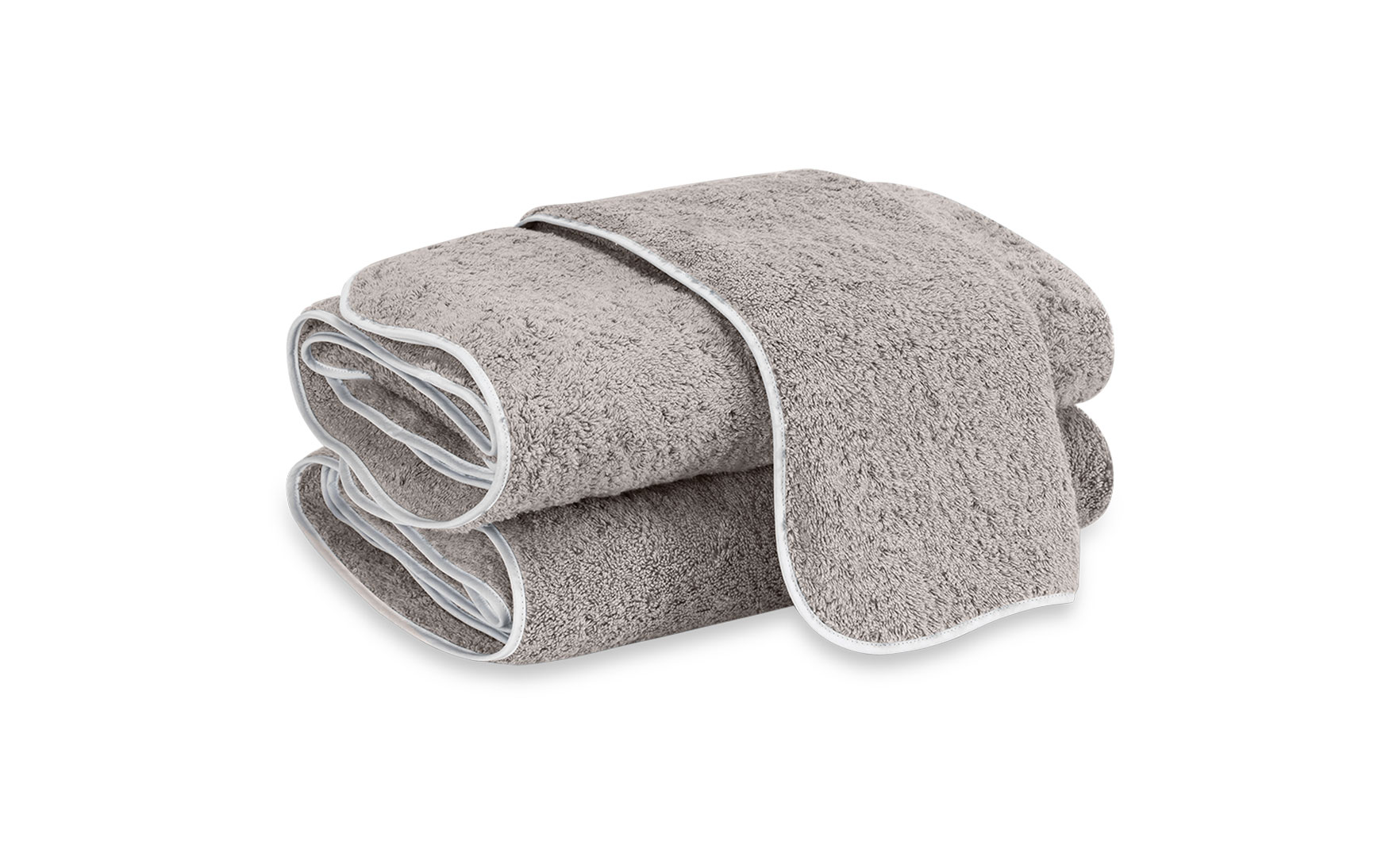 This variation of our popular Cairo towel retains its classic simplicity and its lush long-staple cotton terry. We've now given the edge a smooth subtle undulation trimmed with white tape, creating a lovely silhouette to display in your bath.
