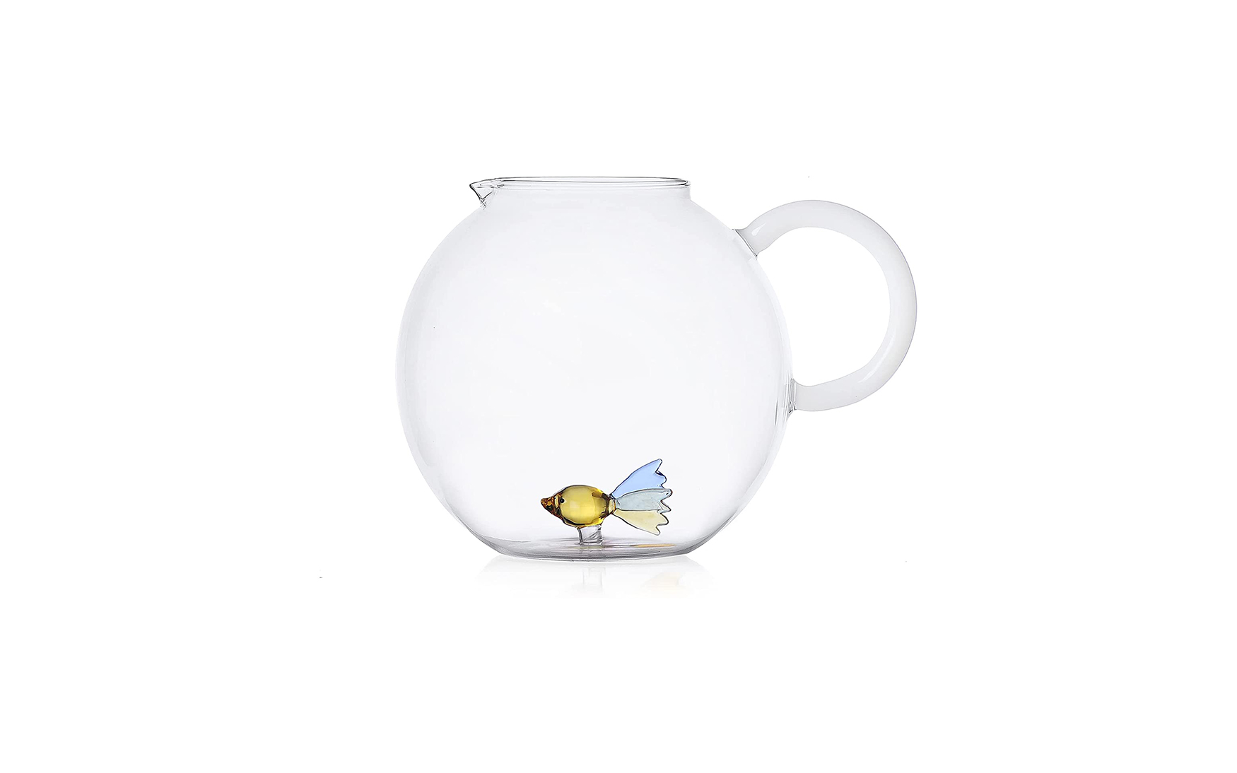 Handmade and lamp worked colored fish pitcher.