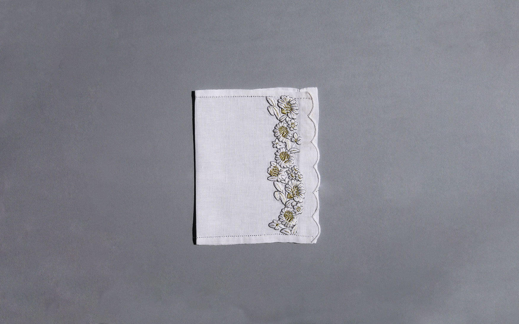 Beautiful Daisy Flowers on white linen with single ajour design.