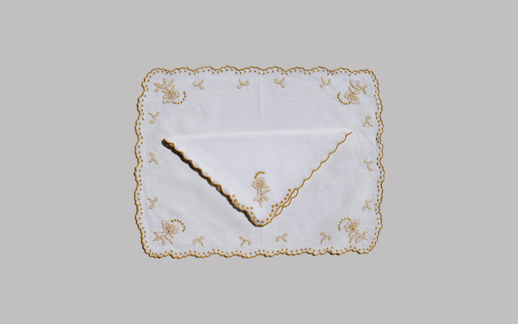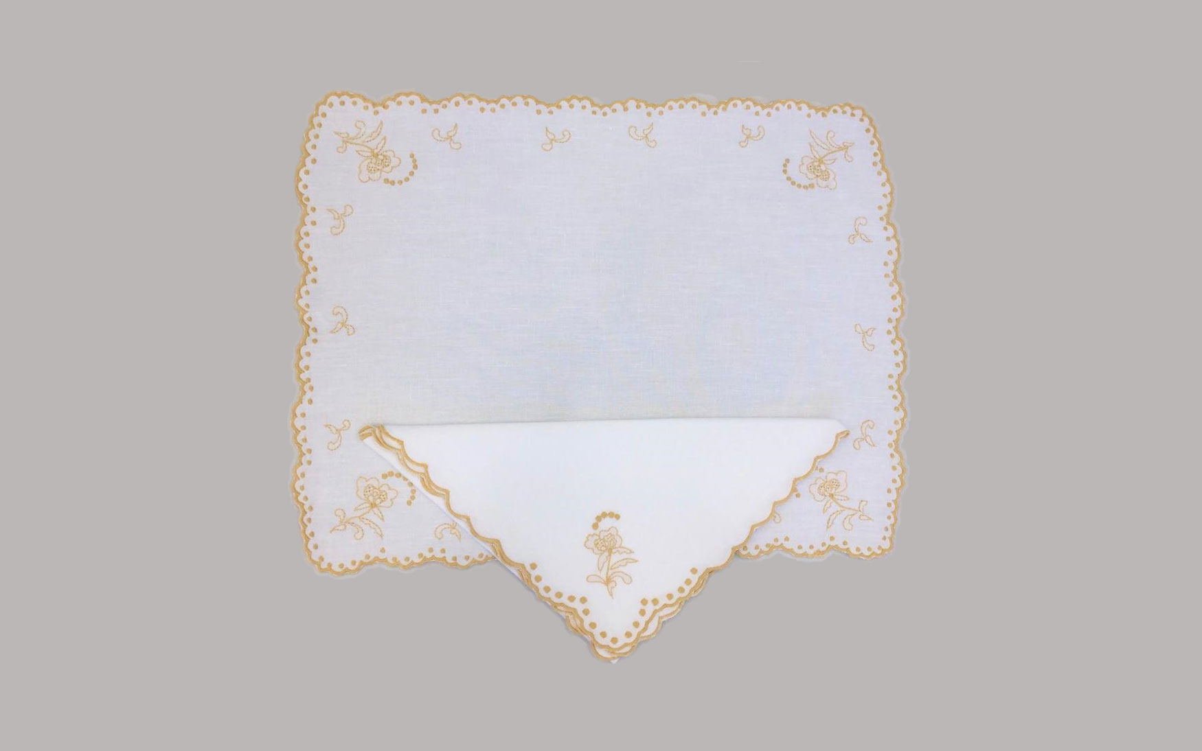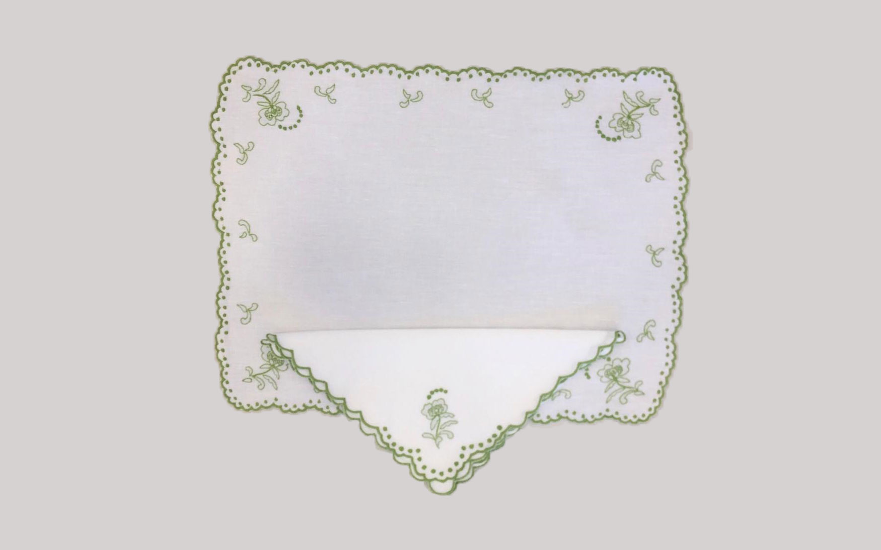 These linen are framed with scalloped edge embroidery border, ensuring a comfortable dining setting for you and your guests.