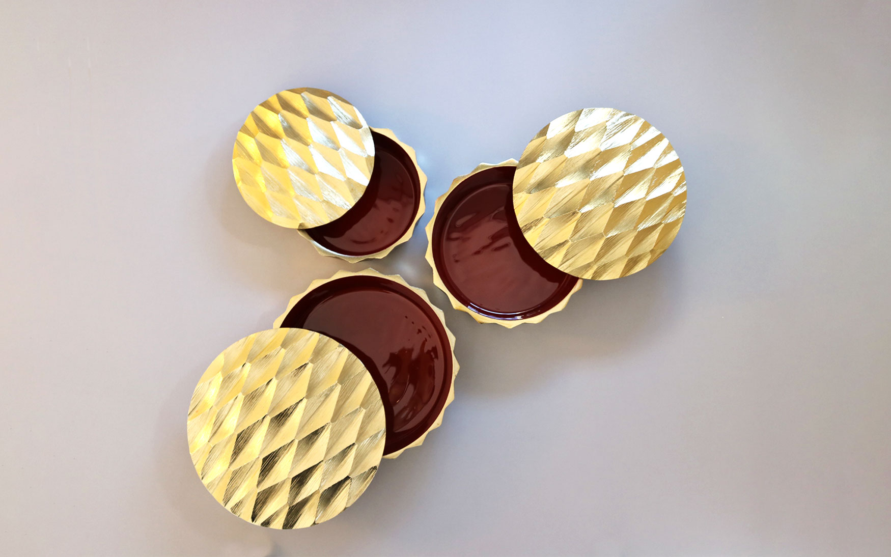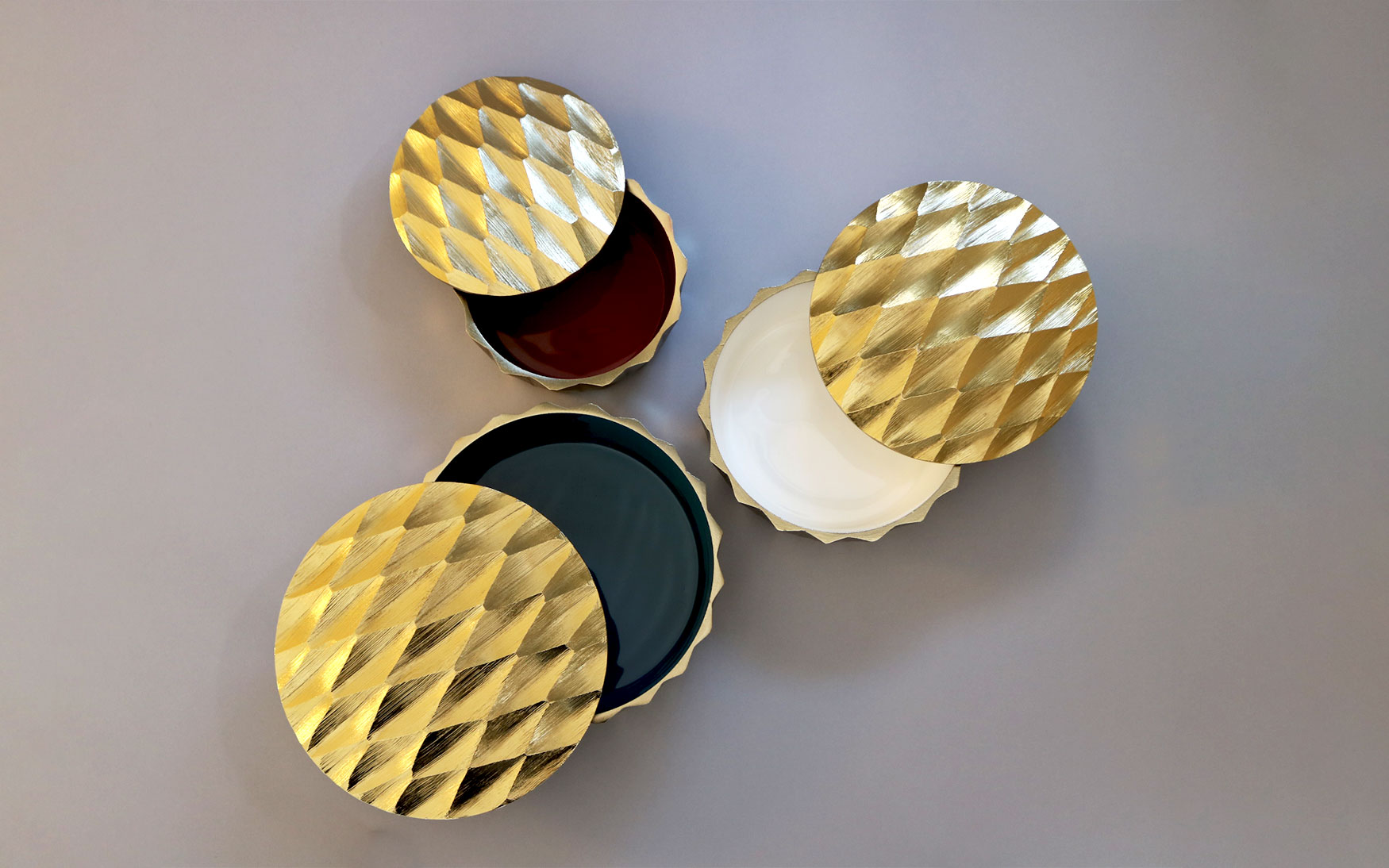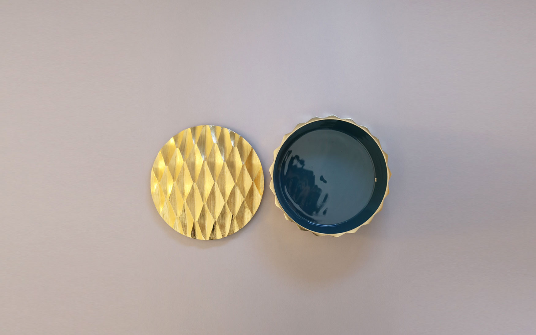 Gold Plated Aluminum Bowl with different color enamel inside.