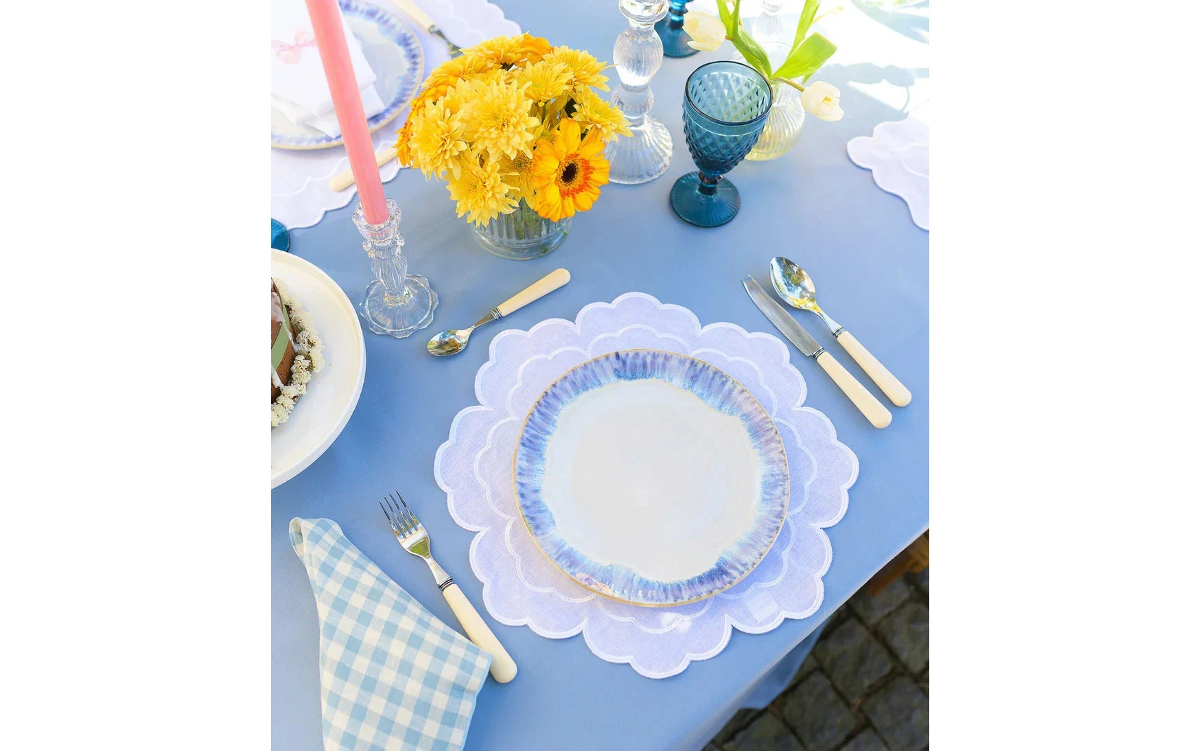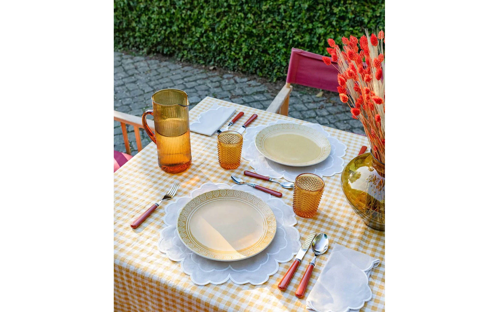 The white Íris placemat and napkin with off-white brings a fresh and chic touch to your table. This linen and cotton placemat features an elegant design with a double embroidered edge, ideal for any meal, from breakfast to dinner. It is the perfect choice for those seeking a versatile and modern style.