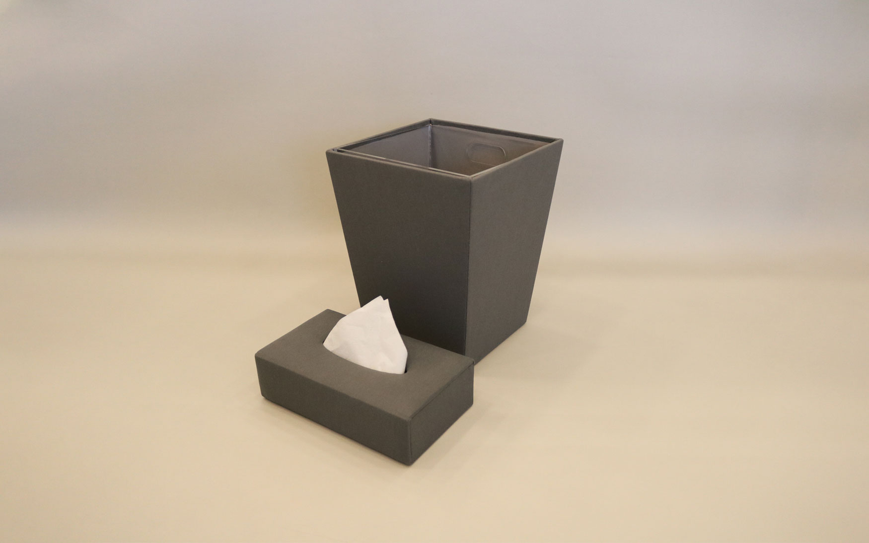 A beautiful hand crafted Linen Dust Bin & Tissue Box Cover Set.
