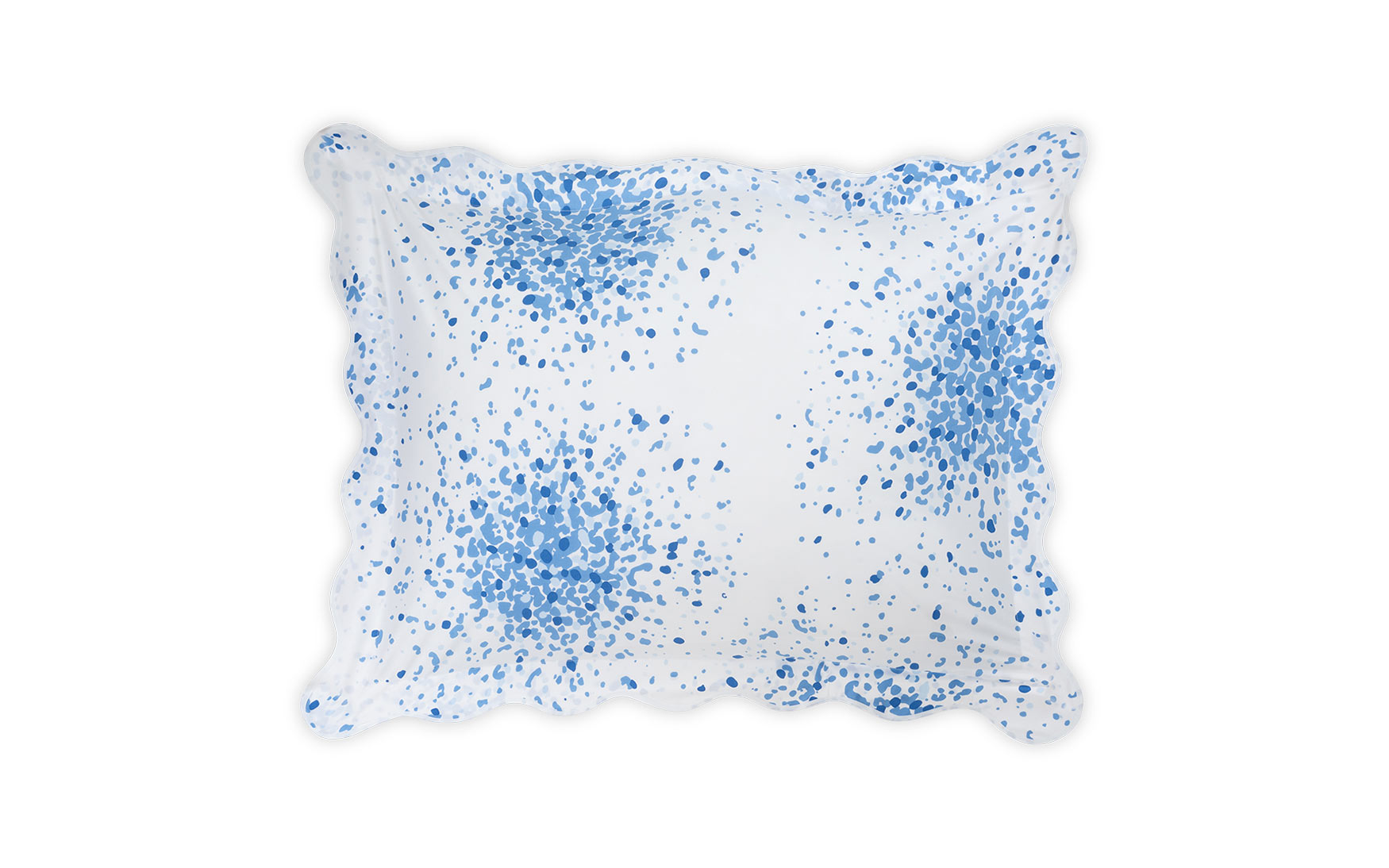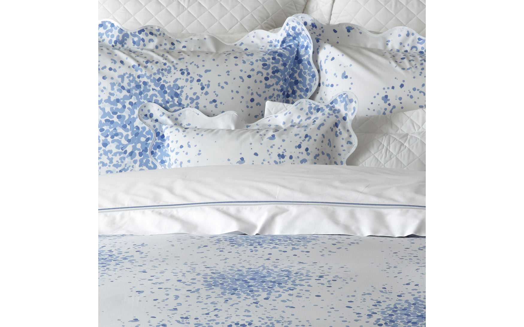 Classic, timeless print by artist and designer Lulu DK. Inspired by hydrangeas in full bloom, Poppy’s cheerful pattern is woven and printed in Italy on 500 thread count Luca Egyptian cotton percale and finished with the signature scallop edges.