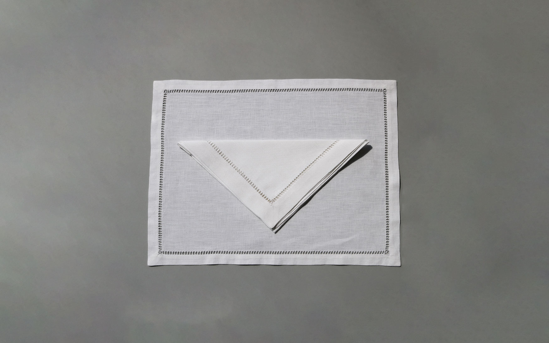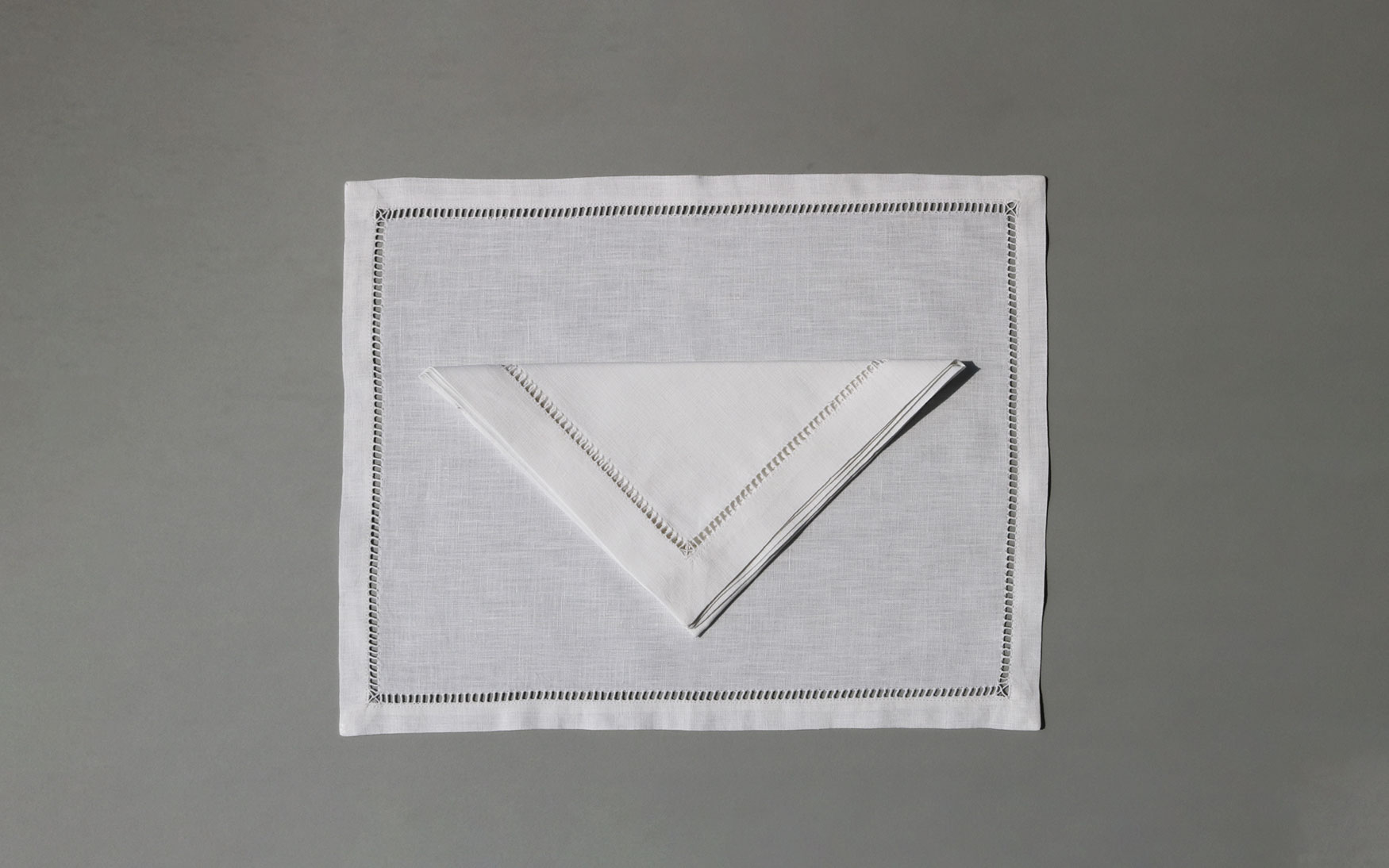 Elegant single ajour 7mm linen collection have placemat & napkin set and bread covers.