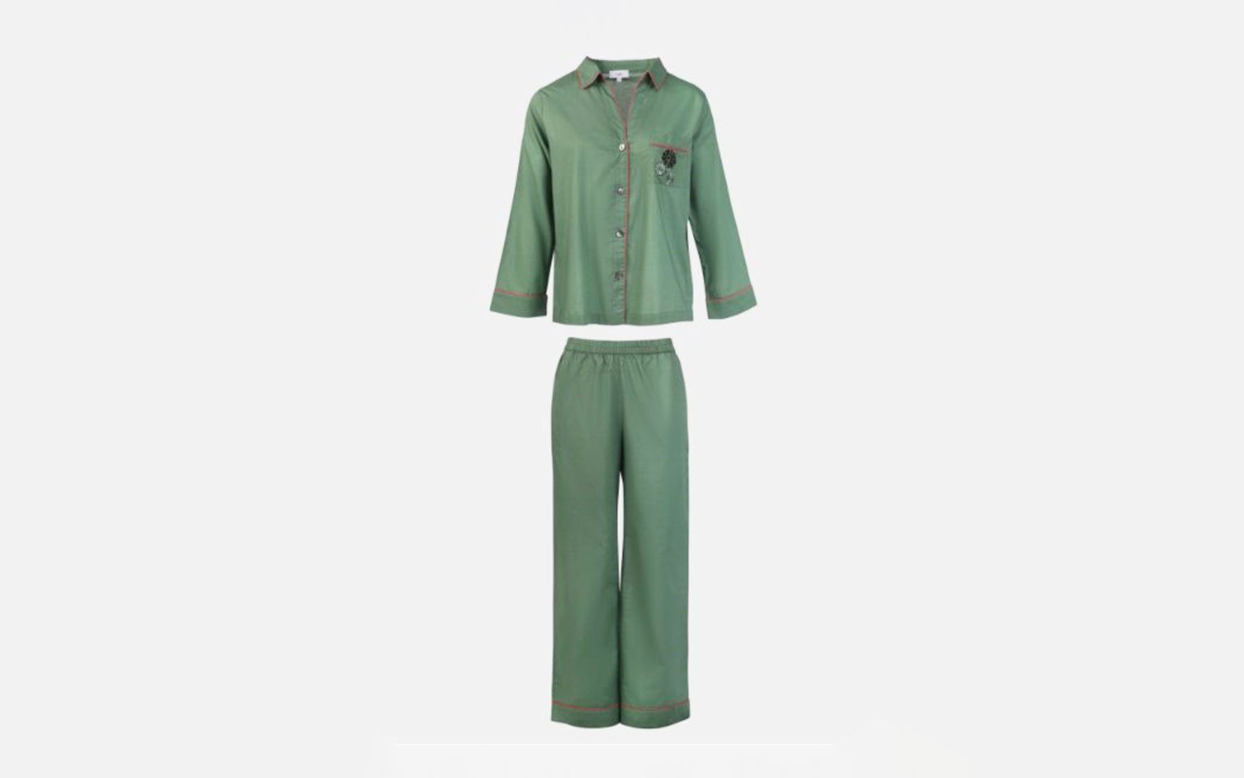 The relaxed shirt and pants are made from cotton that feels exceptionally soft.
